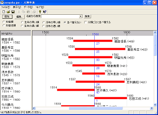 ・人物年表上に表示されている年を指定して、別ソフトである萌年表を起動することができます。